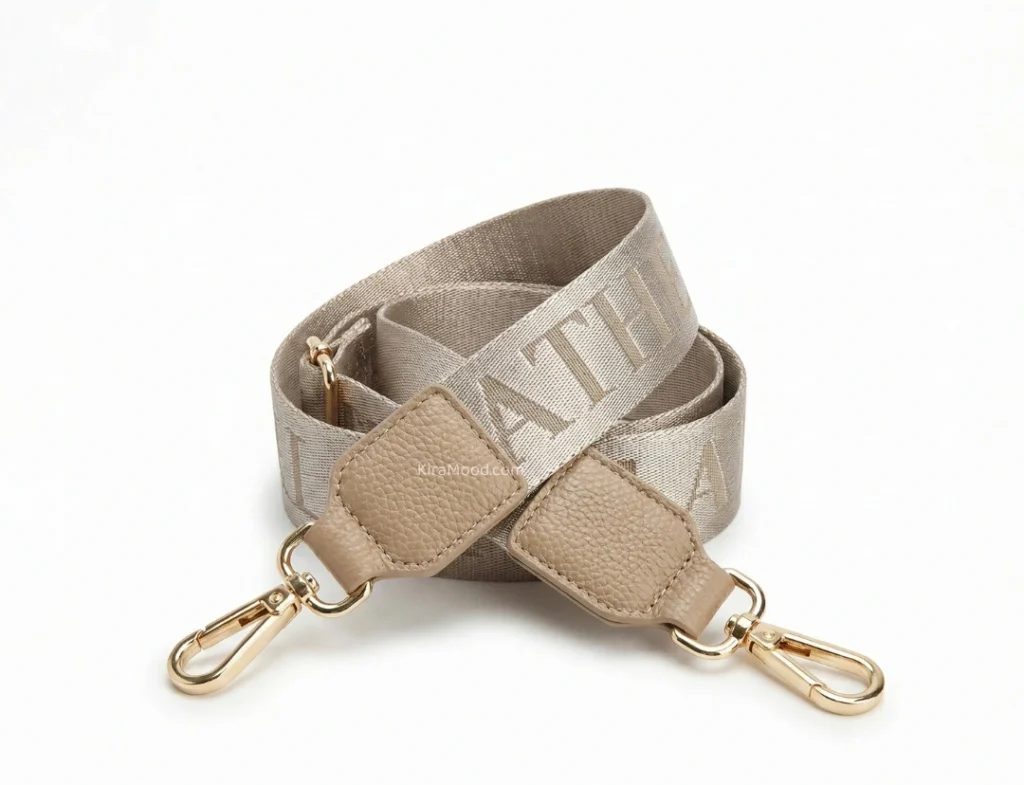 ✔️ Confeccionada en cinta tejida ancha con letras bordadas a tono, aportando un look moderno y deportivo.