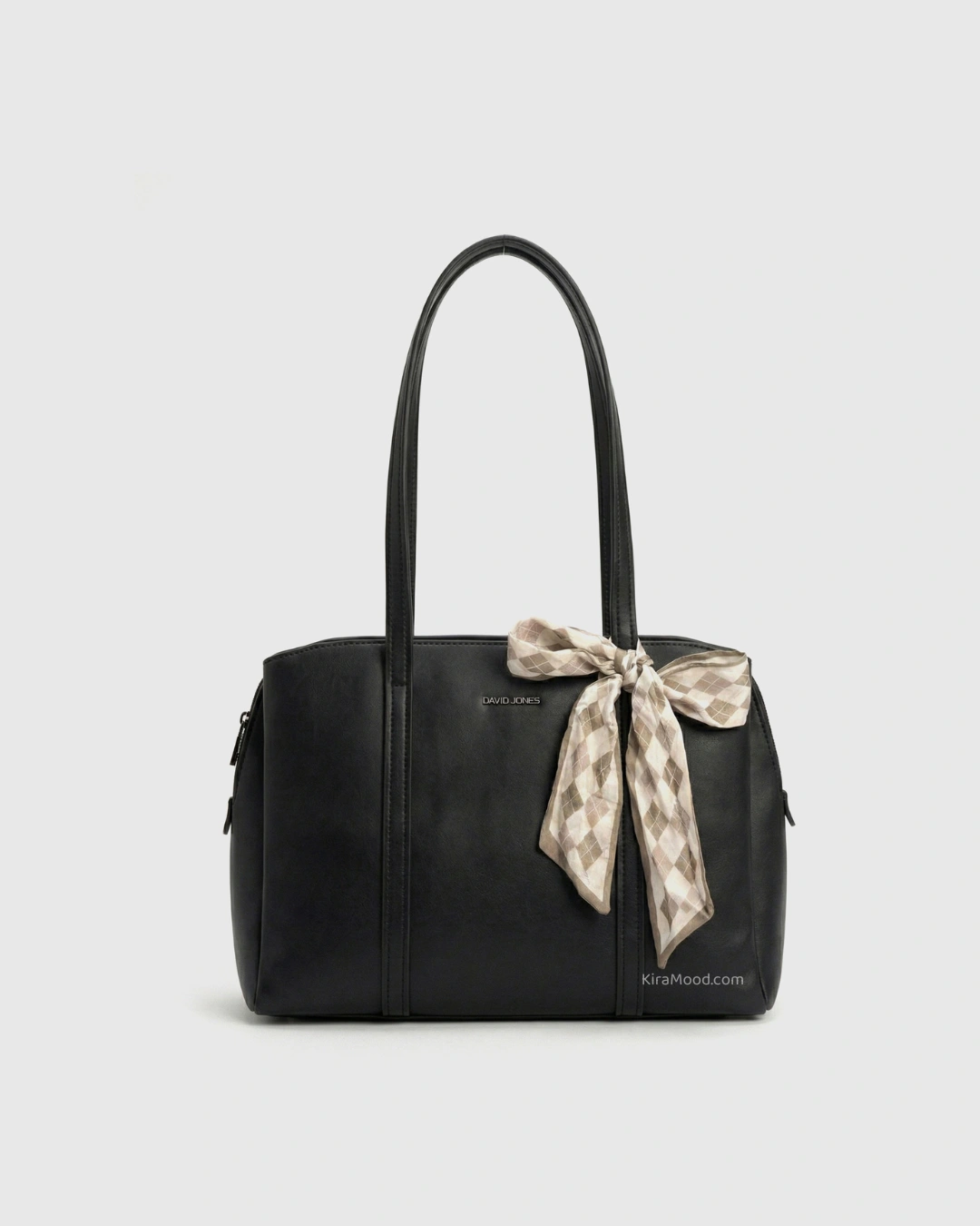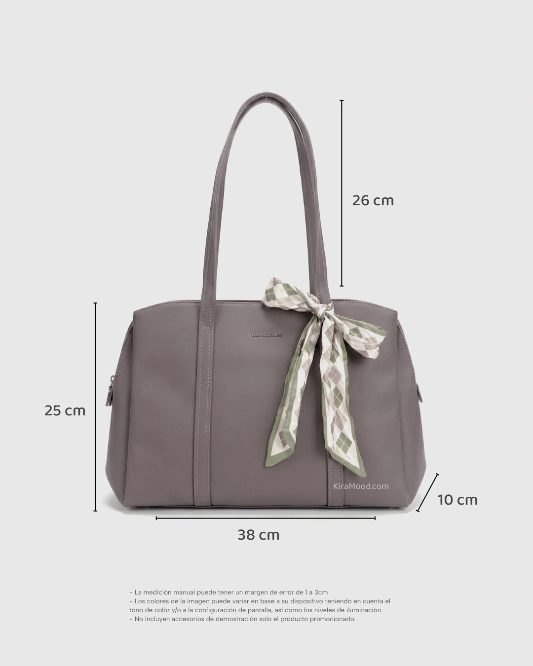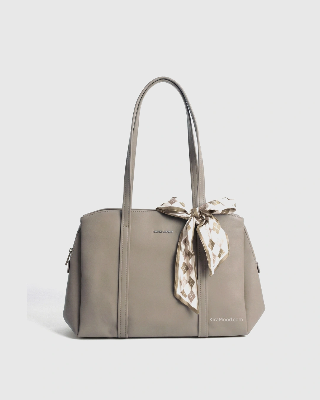 "Eleva tu look diario con este exclusivo bolso de hombro. Su diseño estructurado y minimalista se complementa a la perfección con un delicado pañuelo estampado en el asa, añadiendo un toque de feminidad y distinción. Es el accesorio definitivo para la mujer moderna que busca versatilidad sin sacrificar la elegancia, ideal tanto para la oficina como para una salida casual."