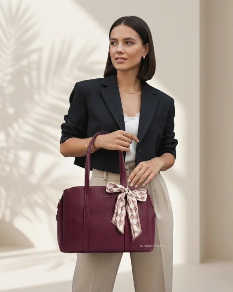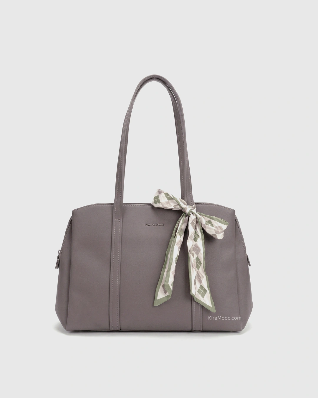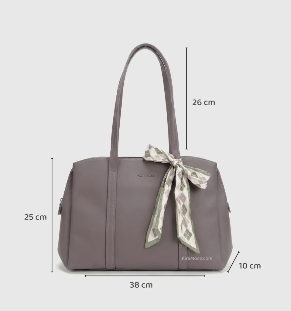 "Eleva tu look diario con este exclusivo bolso de hombro. Su diseño estructurado y minimalista se complementa a la perfección con un delicado pañuelo estampado en el asa, añadiendo un toque de feminidad y distinción. Es el accesorio definitivo para la mujer moderna que busca versatilidad sin sacrificar la elegancia, ideal tanto para la oficina como para una salida casual."