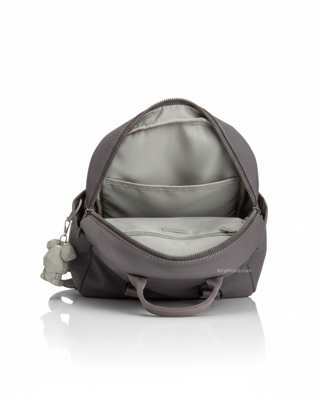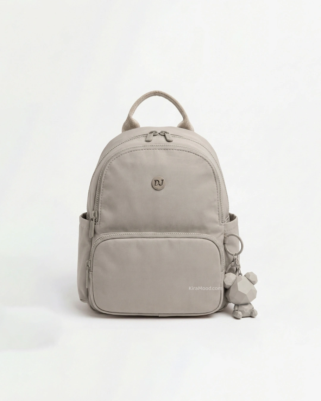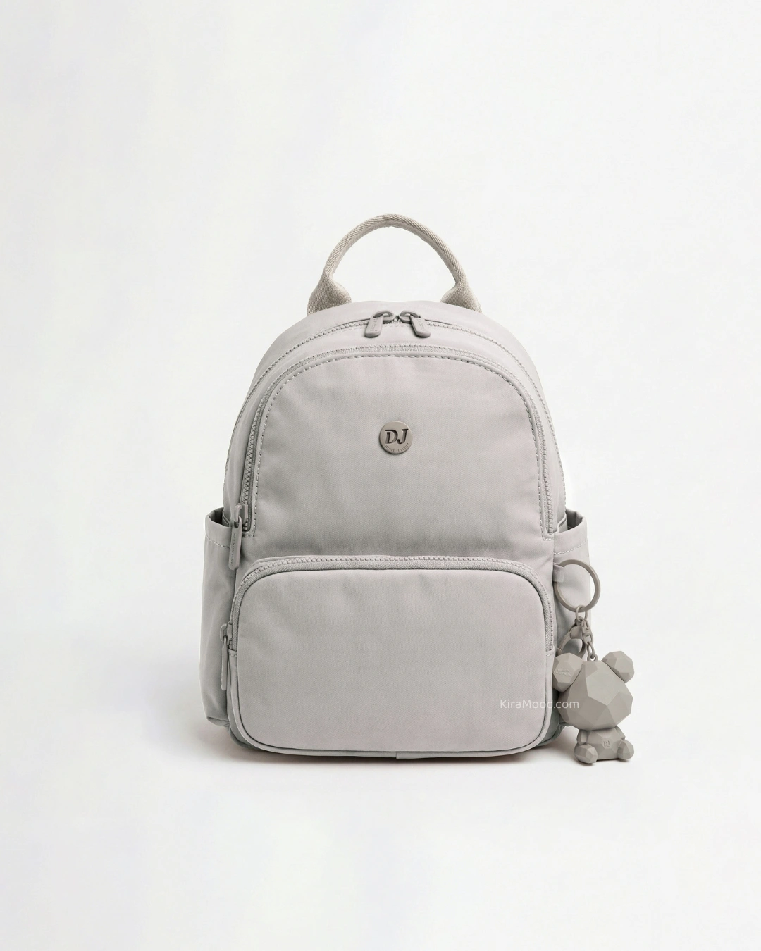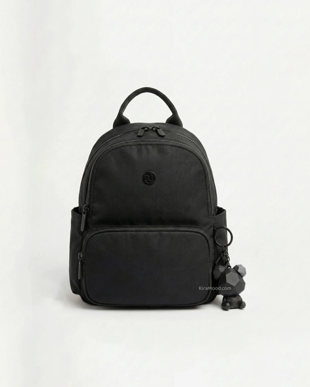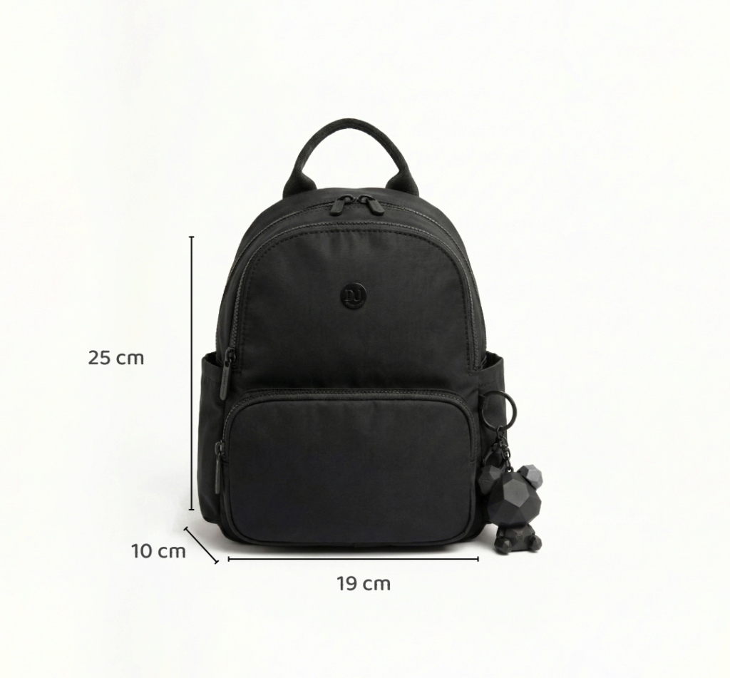 Lleva tus esenciales con estilo en esta mochila ligera de nylon. Con unas medidas prácticas de 25 x 19 x 10 cm, es perfecta para moverte por la ciudad. Cuenta con un bolsillo frontal con cierre, bolsillos laterales de acceso rápido y un interior organizado. Su diseño moderno se completa con un exclusivo llavero de oso geométrico desmontable que le da un toque único y juvenil.