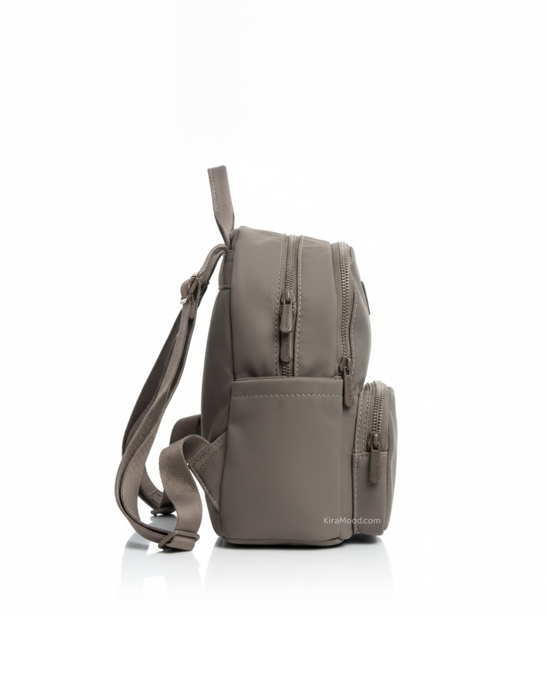 Es el tamaño ideal para moverte ligera por la ciudad. Cuenta con un bolsillo frontal de fácil acceso para tus llaves o cosméticos, y dos bolsillos laterales abiertos perfectos para una botella de agua pequeña o el móvil. Su diseño redondeado y minimalista combina con todo, desde jeans hasta looks de oficina relajados.