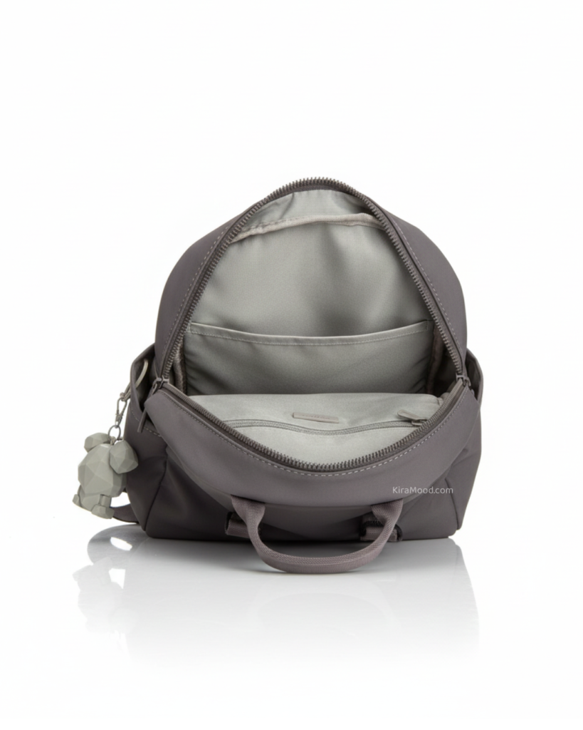 Descubre la compañera perfecta para el día a día. Esta mochila combina un diseño ligero con una organización inteligente. Su compartimento principal se abre ampliamente con doble cremallera, revelando un interior forrado que incluye un bolsillo con cierre de seguridad en la parte trasera y un compartimento abierto en la parte delantera para mantener todo en su lugar.