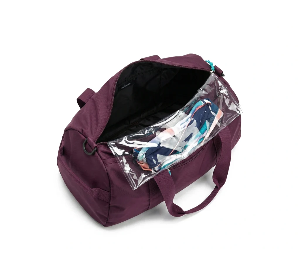 Mantén tu equipo organizado con este maletín funcional. Cuenta con un compartimento lateral independiente para tus zapatillas y un bolsillo interno impermeable transparente, ideal para aislar ropa húmeda o de baño del resto de tus cosas. Perfecto para el gimnasio o viajes cortos.